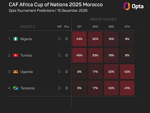 But being drawn alongside Tunisia in Group C – which also features Uganda and Tanzania – means there is plenty of jeopardy for the Super Eagles. They are assigned a 43% chance of topping their pool, compared to Tunisia's 40%.