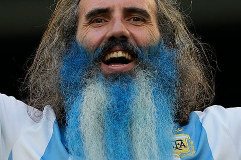 An Argentina fan cheers prior to the start of the Copa America final soccer match between Argentina and Colombia in Miami Gardens, Florida.