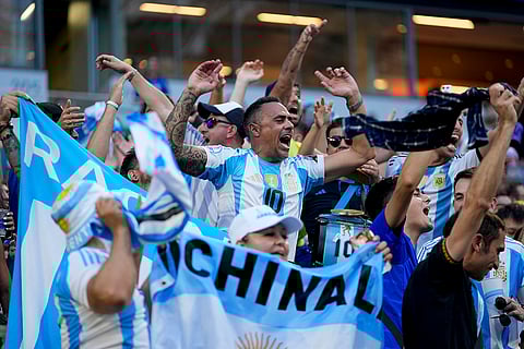 Fans of Argentina cheer prior to the Copa America final soccer match against Colombia in Miami Gardens, Florida.