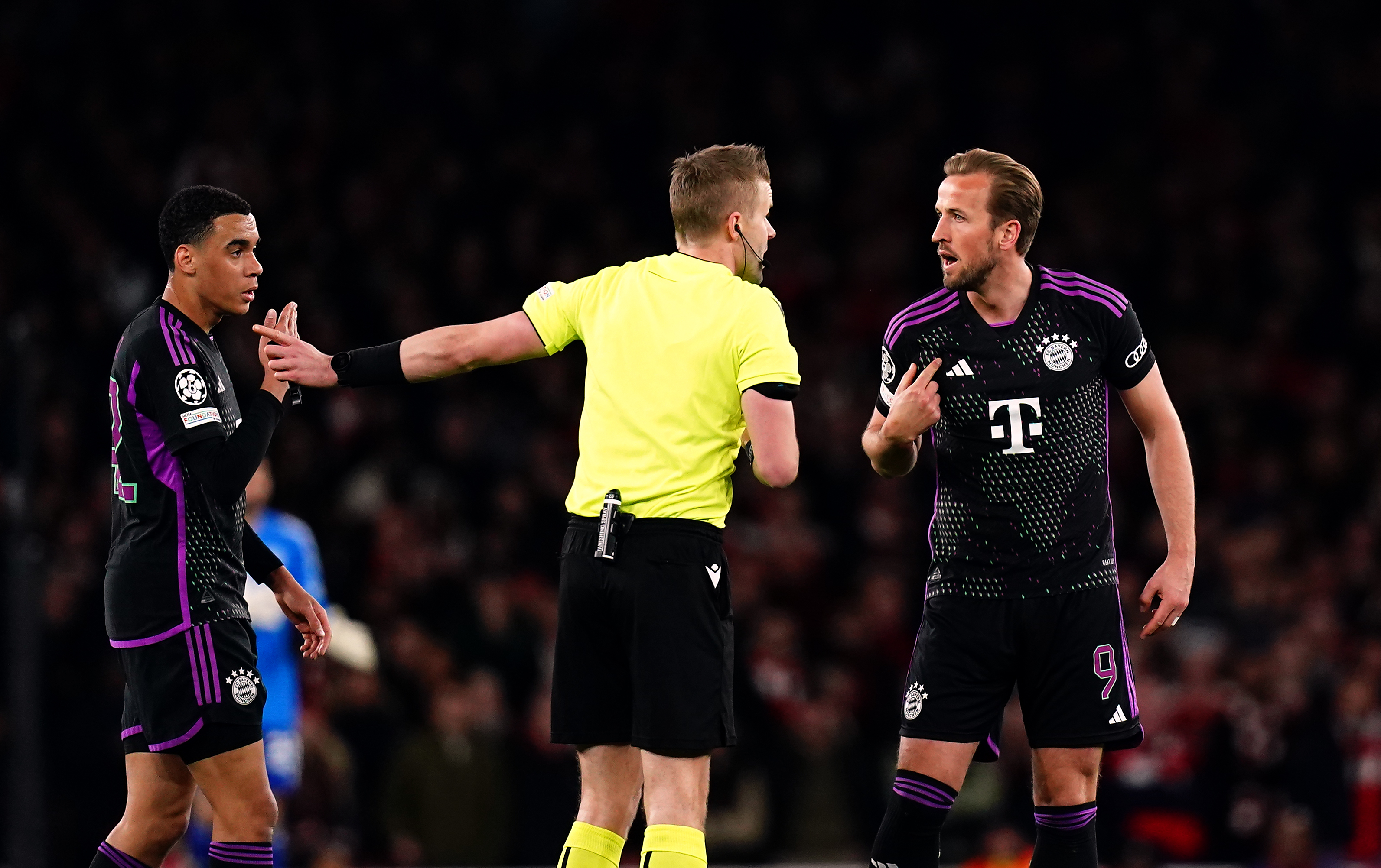 Bayern felt they were denied a clear penalty in the 66th minute of the breathless 2-2 draw at Emirates Stadium after Gunners defender Gabriel inexplicably picked up the ball following a David Raya goal kick.