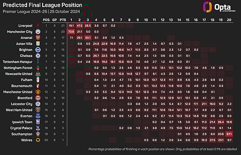 Liverpool lead the Premier League table after eight matches under new boss Slot, taking 21 points to sit one clear of champions Manchester City.