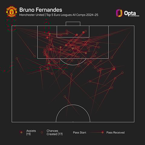 Fernandes created four chances in Sunday's game, at least twice as many as any other player on the pitch (Mohamed Salah, Ryan Gravenberch, Alexis Mac Allister and Andy Robertson created two each).