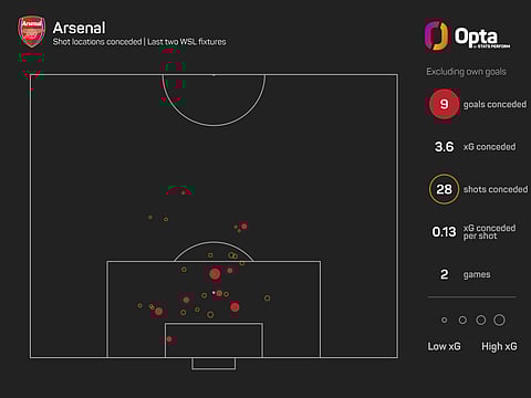Arsenal created chances worth 3.46 xG against Brighton on Monday but only scored twice, shipping four goals from 1.68 xGA.