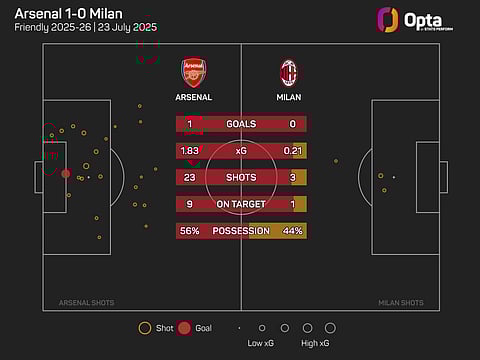 The Gunners were the dominant side, having 23 shots, with nine of those on target, though they only generated 1.8 expected goals (xG) overall.