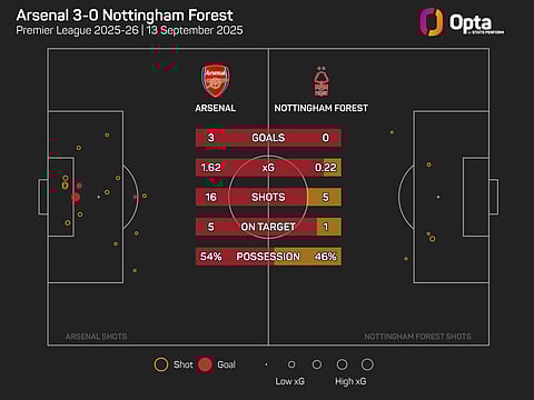 The Gunners moved top of the table ahead of Saturday's other games, with nine points from four matches, while Forest – who lost centre-back Murillo to injury – are five points back.