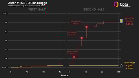 Villa beat Club Brugge 6-1 on aggregate in the last 16, winning the second leg 3-0 at Villa Park against 10 men, thanks to a brace from substitute Marco Asensio on either side of Ian Maatsen's first goal for the club.