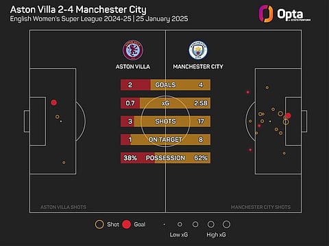 Though Laia Aleixandri's own goal 42 seconds into the second half gave Villa hope in their 100th WSL game, Mary Fowler scored with a brilliant strike of her own to restore City’s lead, while Jess Park added some gloss to the scoreline just after the hour.