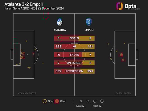 De Ketelaere netted a dramatic 86th minute winner, earning Gian Piero Gasperini's side a 13th home win of the season, more than any team in Europe's top five leagues.