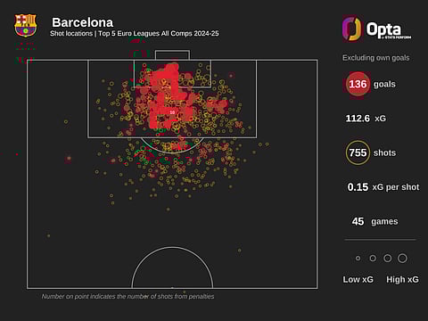 Barcelona's 139 goals in all competitions in 2024-25 are more than any other team from Europe's top five leagues.