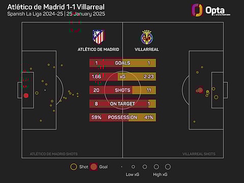 The hosts ended the contest with an expected goals (xG) 1.55 from their attempts, compared to Villarreal's 2.23, with Moreno's spot-kick their only effort on target.