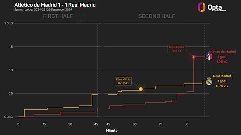 However, after a 15-minute stoppage due to members of the crowd throwing objects at Madrid goalkeeper Thibaut Courtois, Angel Correa snatched a 95th-minute leveller for Atleti.