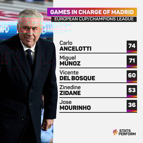 This will be Ancelotti's 75th Champions League game in charge of Madrid, a figure no other coach has reached with Los Blancos in European Cup/Champions League history.