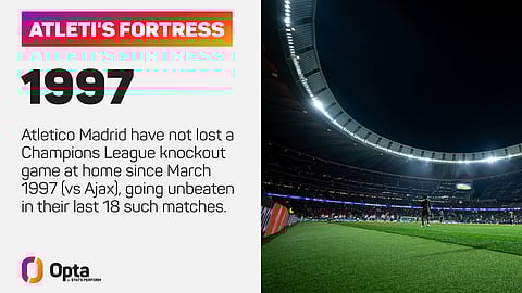 Atletico have lost the first leg in six previous Champions League knockout ties and have recovered to progress from three of those, with all three instances coming when at home in the second leg under Simeone.
