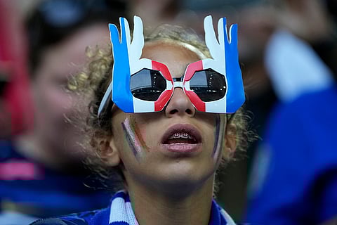 A France fan cheers for the team prior to a Group D match between Austria and France at the Euro 2024 soccer tournament in Duesseldorf, Germany.