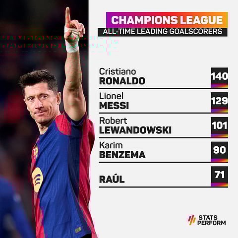 The Poland international is just the third player to score 100 goals in the Champions League, after Ronaldo (140) and Messi (129).