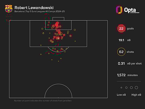In all competitions this season, Lewandowski has now scored 22 goals in 19 appearances – nine more than any other LaLiga player.