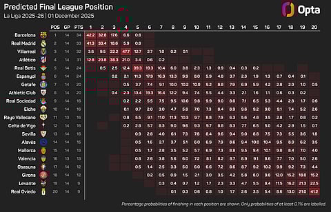 Barca are top with 34 points from 14 games, having overcome Alaves 3-1 on Saturday. Real Madrid are second with Villarreal in third, and Simeone's side round out the top four.