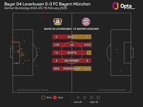 Kompany's side accumulated an expected goals (xG) total of just 0.05 to Leverkusen's 2.16, with Bayern restricted to just two efforts on Lukas Hradecky's goal.