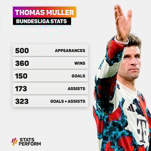 Muller also has 150 goals to his name in the competition, making him Bayern's fourth-highest scorer in Bundesliga history, behind Gerd Muller (365), Robert Lewandowski (238) and Karl-Heinz Rummenigge (162).