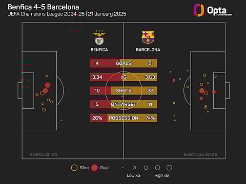 Indeed, it was the first game in Champions League history to finish with that scoreline, with Barcelona becoming just the second side in the competition's history to win a game despite conceding four or more goals.
