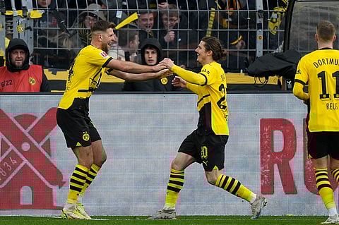 Dortmund found the breakthrough in the 81st minute when a cross fell to an unmarked Fullkrug in the box and, although goalkeeper Lukas Hradecky got a hand to it, he could only guide the striker’s powerful shot into the net.