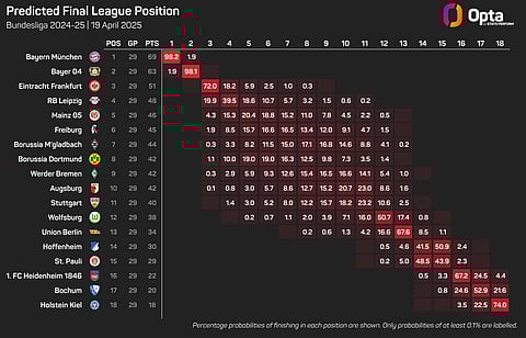 Dortmund are given an 11.1% chance of claiming a top-four finish according to the Opta supercomputer.