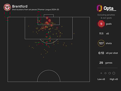 Excluding penalties, Brentford have created chances worth 11.1 expected goals (xG) from set-pieces in the Premier League this term, scoring nine goals from such scenarios including Norgaard's winner.