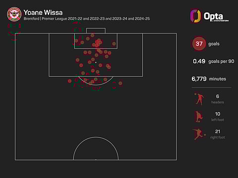 Wissa scored his 37th Premier League goal, overtaking Ivan Toney (36) to become Brentford's top Premier League scorer.