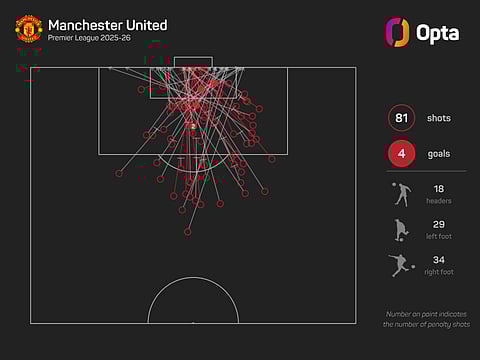 United have had the most shots in the Premier League this season (81) and are averaging 16.2 shots in 2025-26, up from 13.9 under Amorim in 2024-25. Their expected goals (xG) per game is also up at 2.0 compared to 1.3 last season under him.