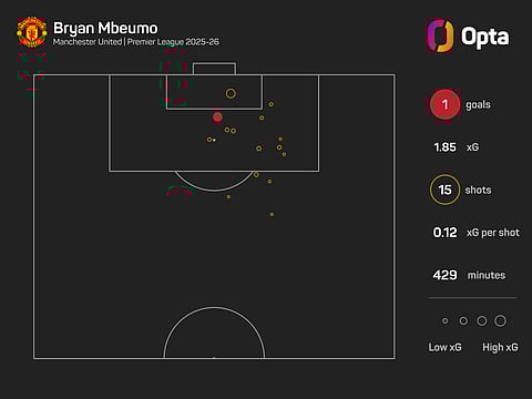 For United, Mbeumo also tops the charts for touches in the opposition box (30) and crosses (26), while only Fernandes (2.8) has generated more xG than the Cameroon international (1.9).