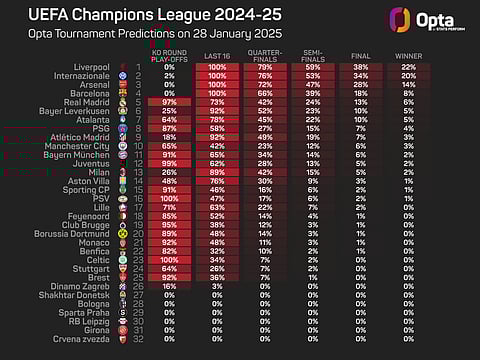 Madrid are still in contention for a top-eight finish but will have to overtake Bayern Munich, Borussia Dortmund, Brest, Lille, Feyenoord, Monaco, Aston Villa and Bayer Leverkusen to achieve that feat.