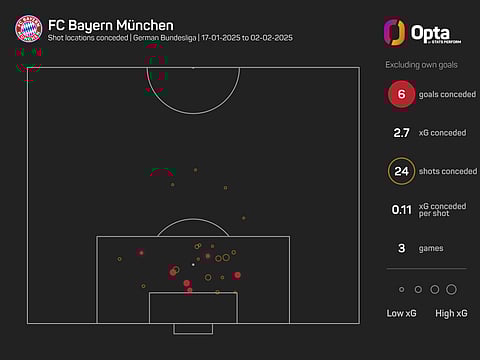In fact, Bayern have conceded six goals in their first three games of the second half of the season, something that has only otherwise happened to them this century in 2006-07 (also six goals).