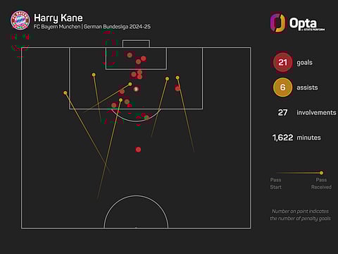 Kane has registered the highest expected goals (xG) total in the league this season with 16.0, overperforming his xG by five goals.