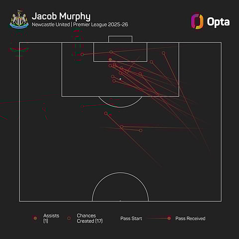 While he only has one Premier League assist in 2025-26, Murphy has racked up 2.24 expected assists (xA).