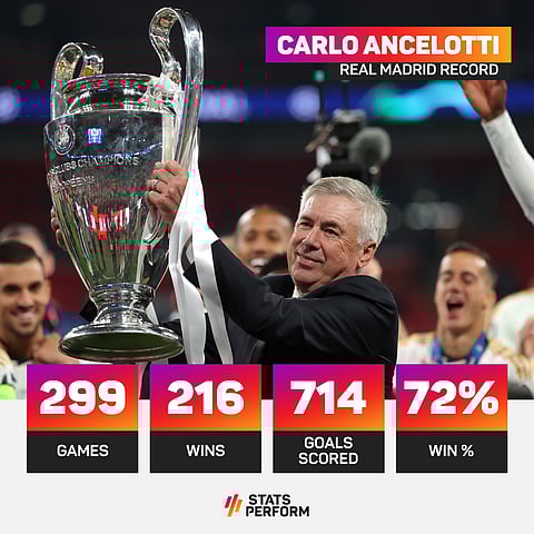 Ancelotti has taken charge of Madrid 299 times across two spells, overseeing 119 games between 2013 and 2015, winning the Copa del Rey in 2013-14 and also leading the Spanish giants to their long-awaited 10th European Cup/Champions League crown.