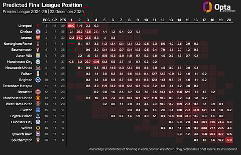 It is the 21st time Liverpool have been top of the English top-flight on Christmas Day; the most of any side. They have gone on to win the title in 11 of those previous 20 seasons (55%).
