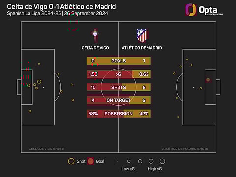 At the other end, Simeone's men only managed two shots on target and generated just 0.62 expected goals (xG) to the hosts' 1.53 xG, but Julian Alvarez's late goal inflicted Celta's first home defeat in seven months.