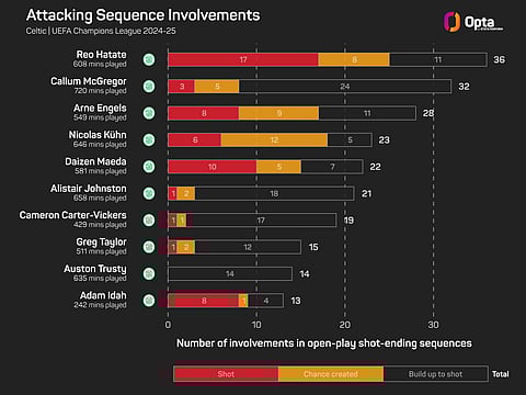 Adam Idah and Daizen Maeda have shared much of the goalscoring burden, netting three times each in this Champions League campaign.