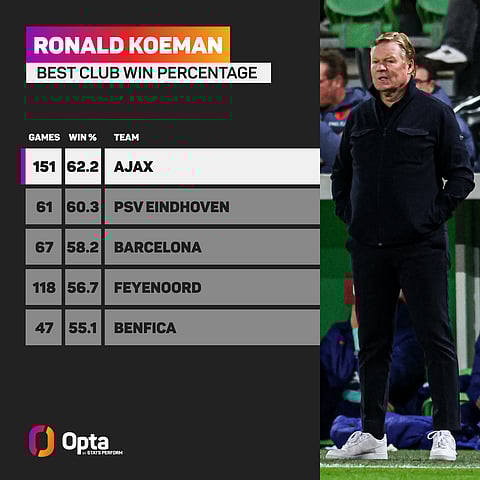 Koeman's professional coaching career began in 2000 in his homeland with Vitesse before returning to Ajax just under a year later, a club he appeared for 114 times as a player.