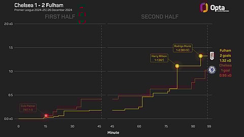 After falling behind early on, Fulham kept the pressure on, having 14 shots worth 1.32 expected goals (xG) compared to 12 attempts for Chelsea, who created 0.95 xG.