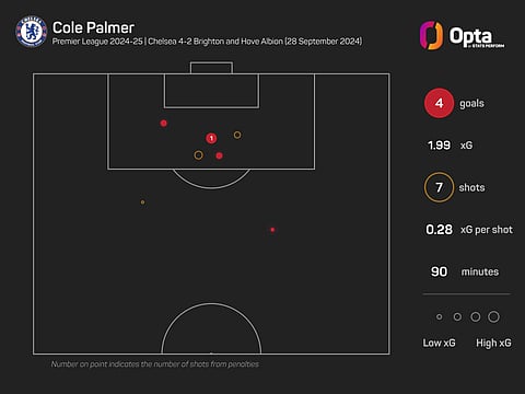 No player had ever previously scored four times in the first half of a Premier League match, while Palmer's first three goals came within a span of just nine minutes and 46 seconds.