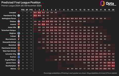 Given the two sides are only separated on goal difference ahead of Sunday's match, the Opta supercomputer finds it difficult to split.