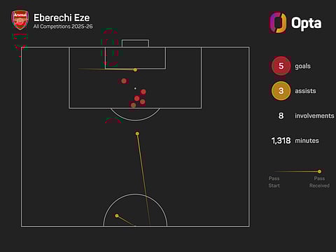 In fact, Eze has now scored four goals in his last four league appearances for Arsenal, albeit three of those, of course, came last week against Spurs.