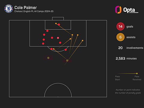 Palmer has not scored or assisted in any of his last six Premier League games, his longest drought since joining Chelsea last season.