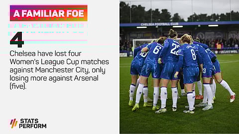 In fact, Chelsea have lost four League Cup matches against City, only losing more against Arsenal (five). They did win the most recent encounter, however, in last season's semi-finals.