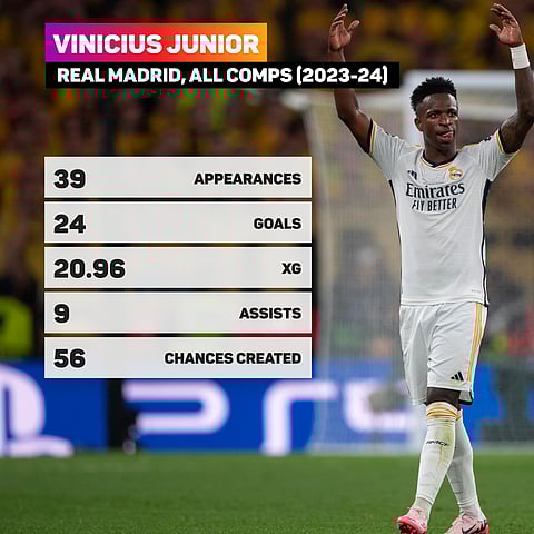 Vinicius outperformed his 20.96 xG, while also providing nine assists and creating 56 chances for his team-mates.