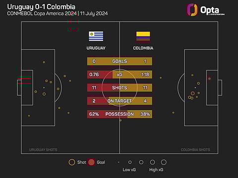 Uruguay only managed 11 shots amounting to 0.76 expected goals (xG) to Colombia's 1.18 despite Munoz's red card, leaving Bielsa to lament the scrappy nature of the game.