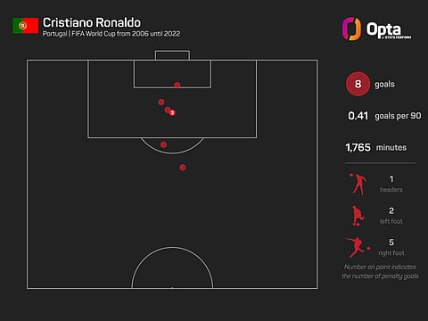 Ronaldo has scored eight times in 22 appearances at the World Cup, a total only bettered by Eusebio (nine) for Portugal at the tournament.