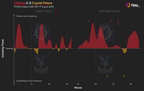 Eze had more shots (six), shots on target (two) than anyone else on the pitch and put in more crosses (four) than anyone else for Palace, while Guehi's five clearances were a total bettered by team-mates Maxence Lacroix and Tyrick Mitchell (both seven).