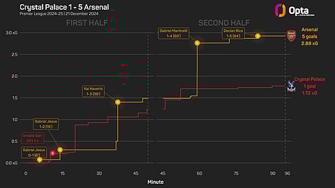 Palace had opportunities though, having 15 shots, one more than their opponents, while matching Arsenal's six shots on target, though Glasner's side only registered 1.72 expected goals (xG) compared to 2.88 for the visitors.